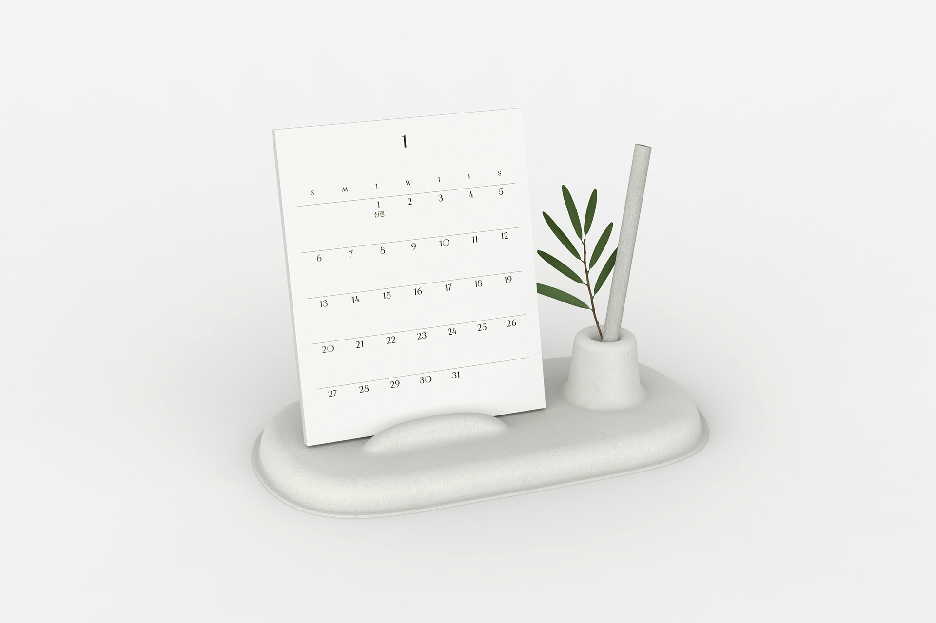 The calendar holder was intentionally designed for reuse, allowing it to serve multiple purposes—such as a memo holder or photo display—beyond the calendar’s original lifespan. All materials used for the calendar and its packaging are 100% eco-friendly and recyclable. Complementary elements, including pencils and dried flowers, were carefully hand-selected to harmonize with the overall design concept.