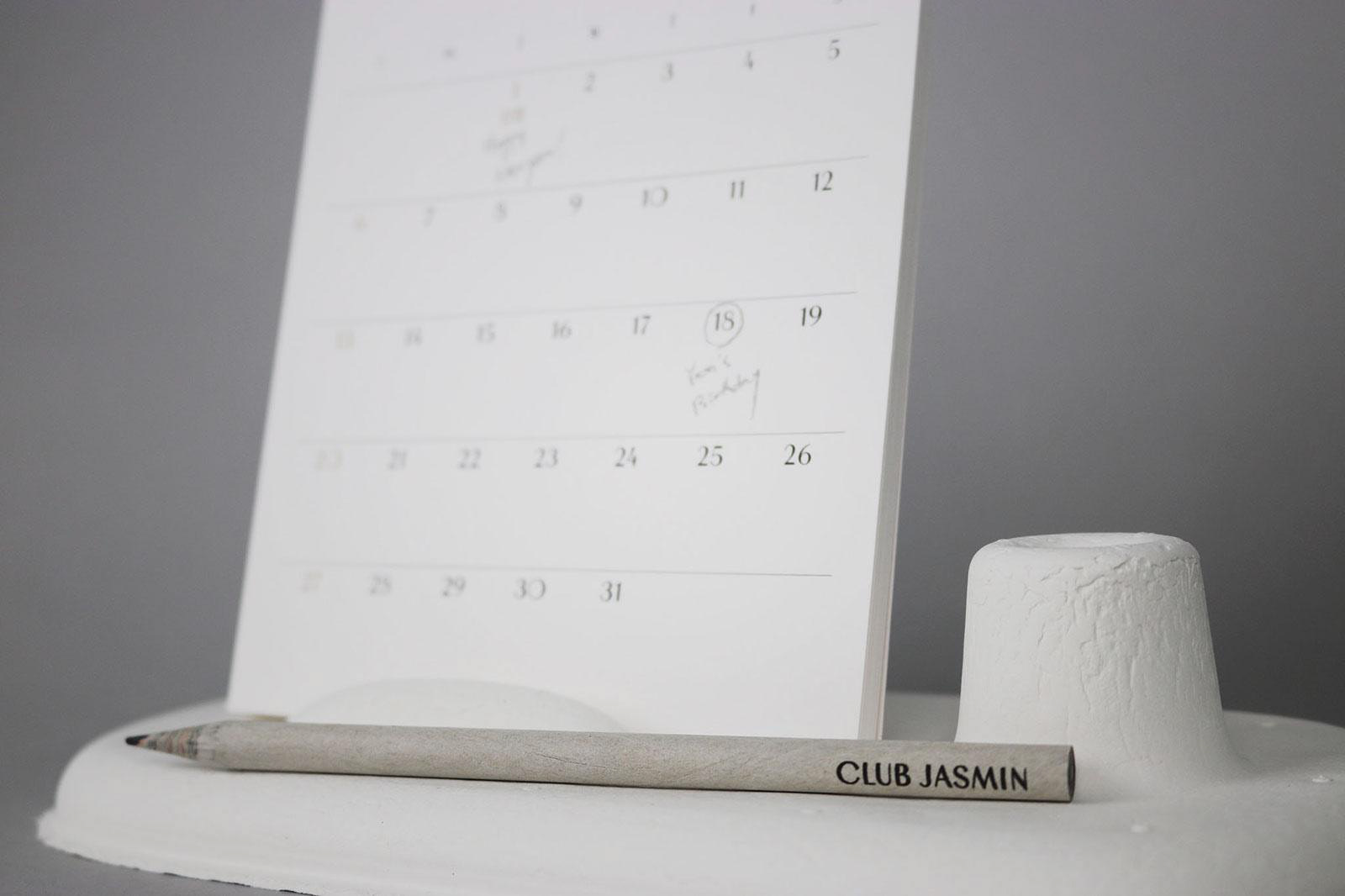Club Jasmine’s 2019 calendar was developed in response to the disposability of conventional calendars, which are often difficult to recycle and discarded after a single year. The project reimagines the calendar as a sustainable, three-dimensional object that functions as both a timekeeping tool and an interior design piece.