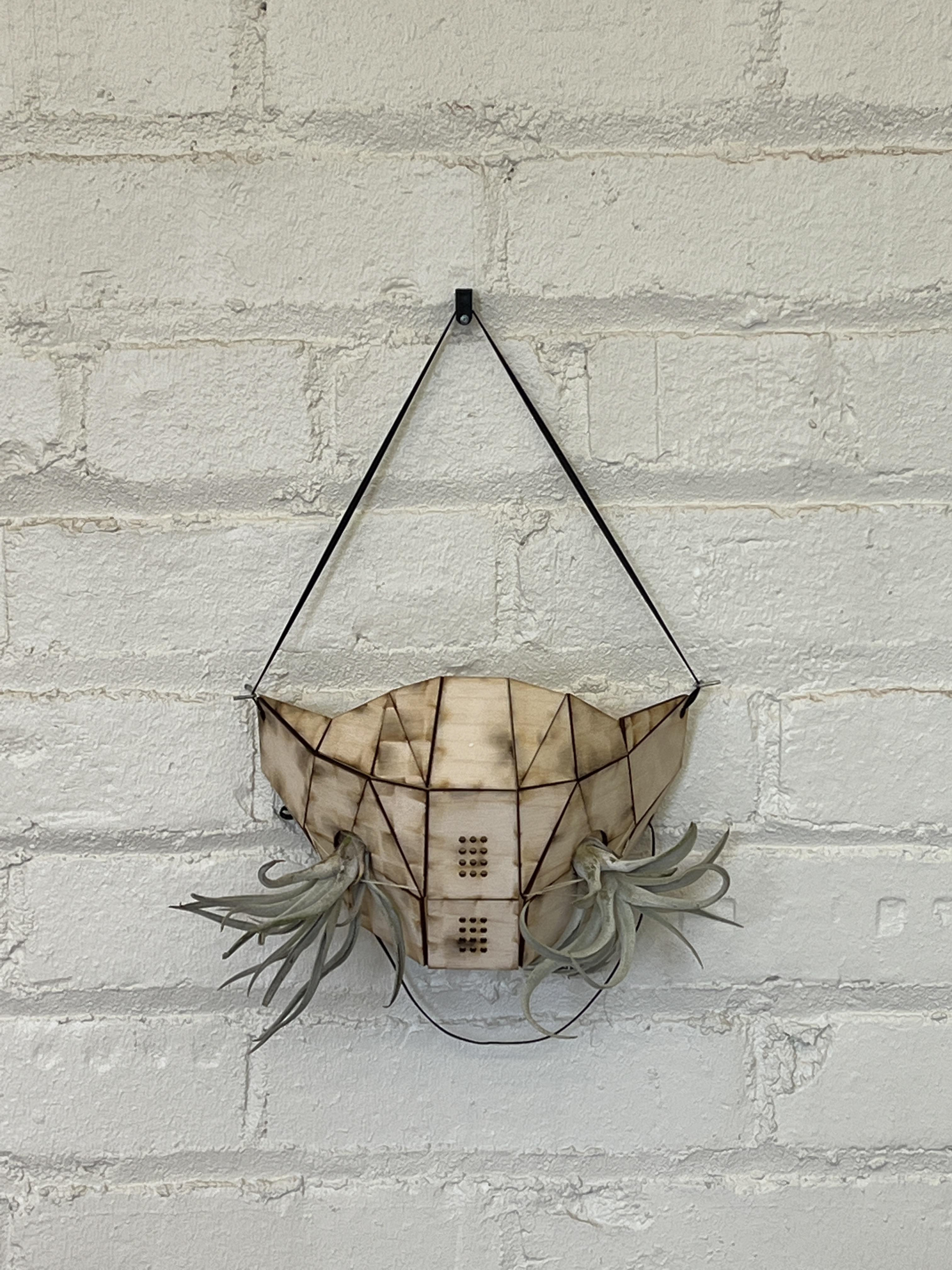 In this conceptual art piece, Tillandsia and natural wood(*assumption) are substituted for a mask filter, made of chemical materials; The title implies that TS stands for Tillandsia and 95 represents how much pollution can filter. Tillandsia, an aerial plant surviving without roots, functions as a natural air purifier. Also, it lives in diverse environments from rainforests to deserts according to the species. This characteristic of Tillandsia will enable them to survive in extreme environments and temperatures in the future.